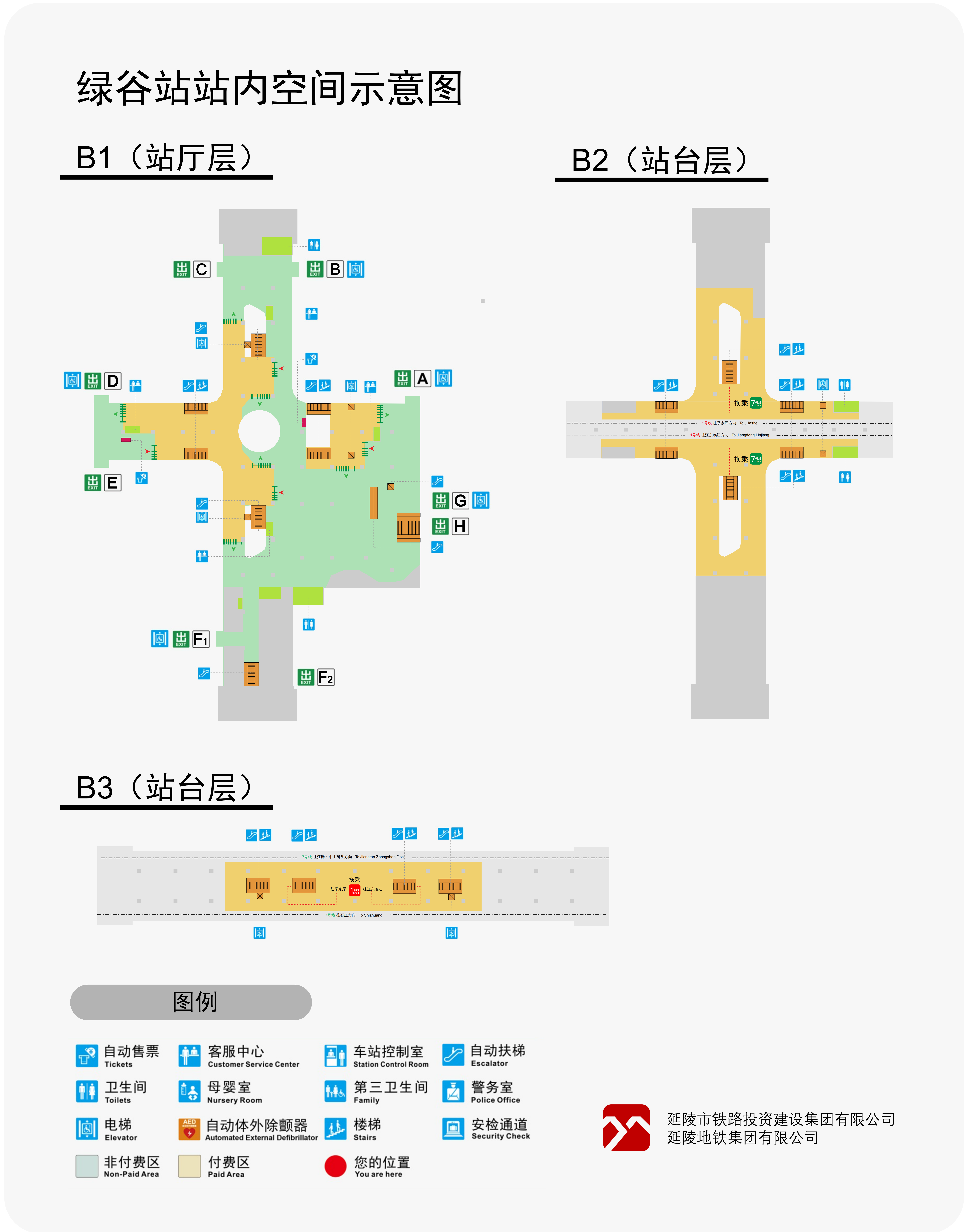 - 无障碍电梯:设置在A、G出入口